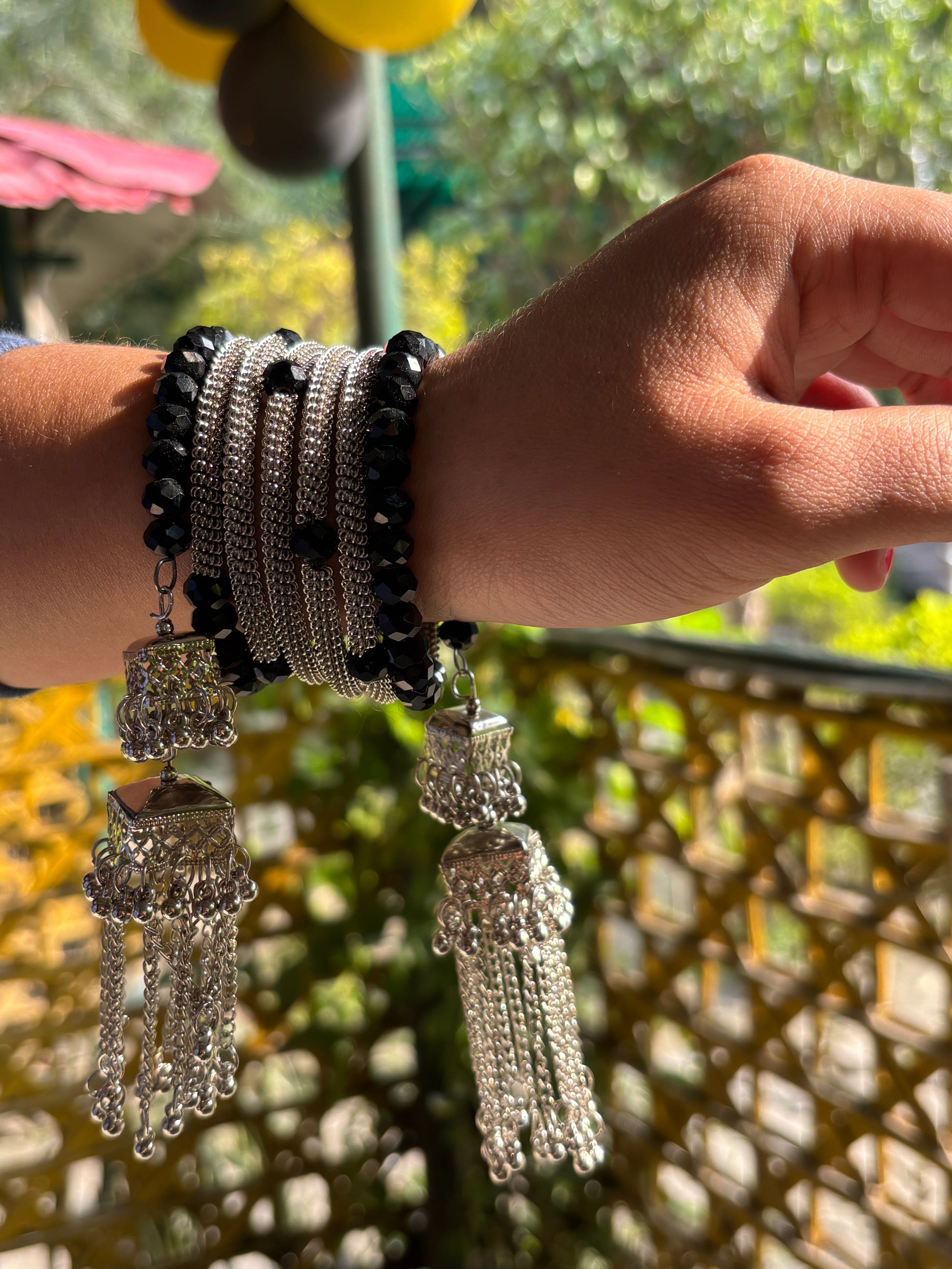 Oxidized Silver Banglest with Jhumka Latkans.