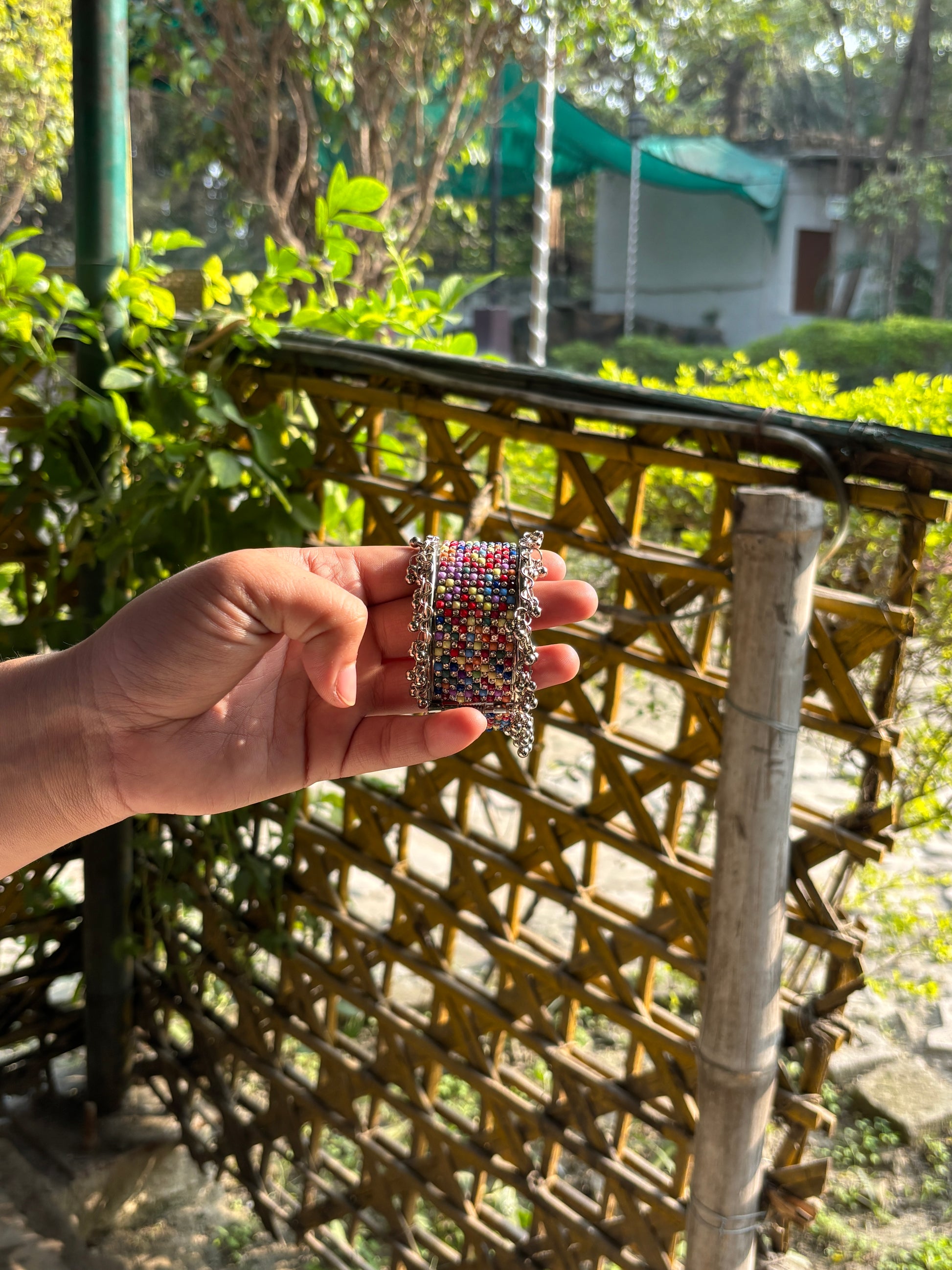 Elevate your festive ensemble with this versatile silver cuff bracelet, designed to complement traditional and contemporary styles alike. Crafted with precision, the freesize design ensures a comfortable fit for most wearers, making it an ideal accessory for celebrations and everyday wear. The sleek silver finish adds a touch of sophistication while maintaining the vibrant energy perfect for festival occasions. Whether layered with other pieces or worn solo, this cuff delivers understated elegance with lasting appeal.